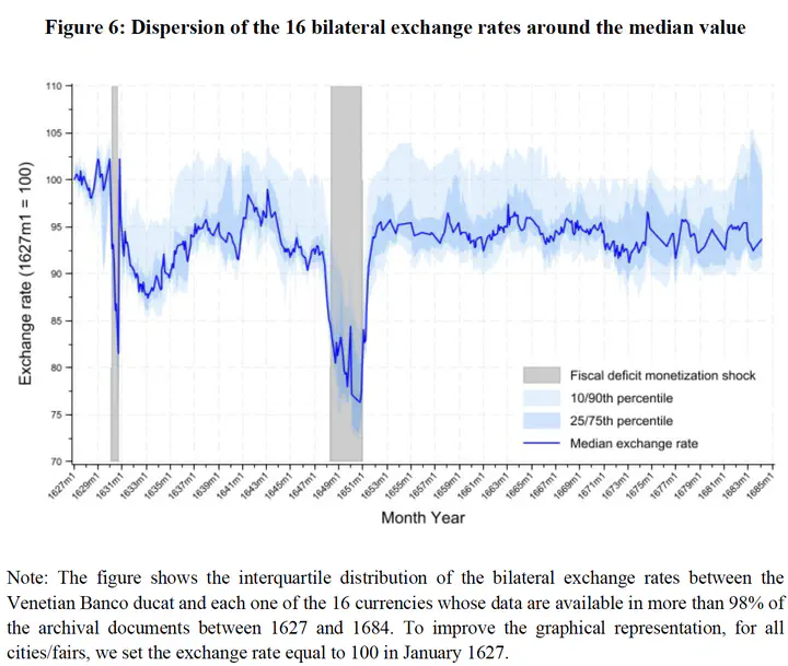 This paper focuses on an early unique experiment of managed float of State-issued money, implemented in Venice between 1619 and 1666. Building on a new hand-collected database from a previously unused archival source, we show that, despite the Venetian Banco ducat’s status as an international currency and the government’s fiscal credibility, the exchange rate was directly and significantly affected by episodes of automatic government deficit monetization during the crises of 1629-31 and 1648-50. This suggests that a contingent commitment regime in which government-managed fiat money mimics a convertible currency can be effective, but is very sensitive to the time-consistency of the monetary-fiscal policy mix.